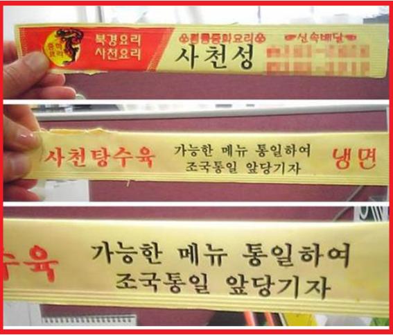글귀에는 ‘가능한 메뉴 통일하여 조국통일 앞당기자’라고 적혀 있어 웃음을 자아냈다.