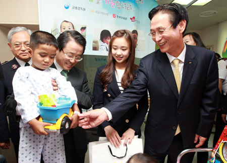 '캄보디아 심장병 어린이 수술 지원'사업은 국민은행이 금융감독원, 한국 구세군과 함께 캄보디아의 심장병 어린이들을 초청해 무료로 수술을 지원하는 민관 협력사업으로 올해는 세 명의 어린이가 초청됐다.