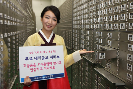 우리은행의 대여금고 무료임대 서비스는 9월 21일부터 10월 8일까지 18일간 실시되며, 이용을 원하는 고객은 동행의 대여금고가 설치되어 있는 본점 영업부를 포함해 711개 점포에서 편리하게 이용할 수 있다.