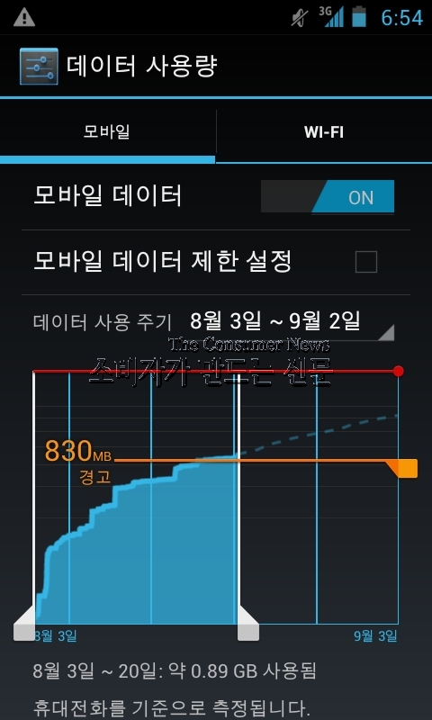 지난 8월 중순 휴대폰이 자동 업그레이드 된 후부터 문제가 발생하기 시작했다. 데이터 제한 팝업이 계속 떴고 이용 시 제한이 되는 경우가 빈번했다.
