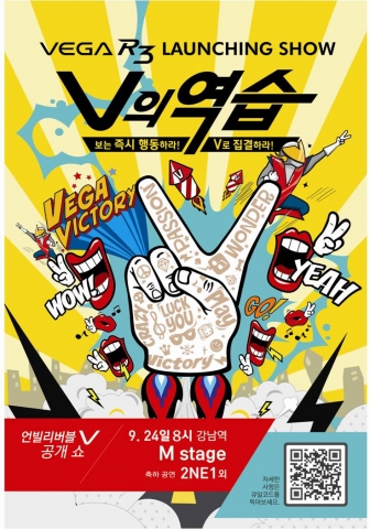 ‘V’는 팬택의 혁신 브랜드 ‘베가(VEGA)’를 상징한다. ‘V의 역습’에는 2NE1 등이 출연해 약 2시간 동안 열정적인 무대를 펼칠 예정이다.