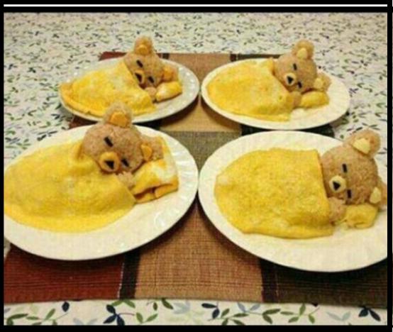 공개된 '기발한 오므라이스' 사진에는 밥과 달걀로 만든 귀여운 곰돌이 인형의 모습이 담겨있다.