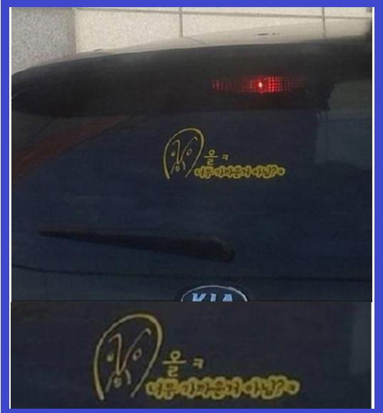 공개된 사진에는 검은색 차량의 뒤에 붙여진 글귀가 인상적이다.