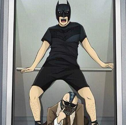 일러스트는 엘리베이터 안에서 노홍철 대신 배트맨이 저질댄스를 추는 것으로 그렸다. 노홍철 밑에서 얼굴을 내밀고 있는 싸이는 악당 베인으로 대체됐다.