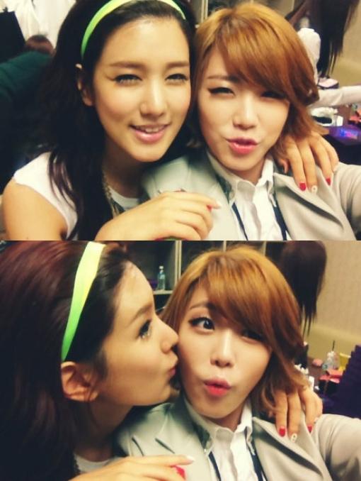 그룹 시크릿의 전효성은 21일 오후 자신의 트위터에 “음악방송에서 만난 지원언니~ 같이 활동하게 되다니+_+ 너무 좋다아아>_