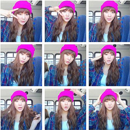 청순하고 성숙했던 예전 모습에 반해 앞머리를 내린 효과로 귀엽고 한층 어려보이는 얼굴로 핑크색 비니와 셔츠를 매치해 패션 감각을 뽐냈다.