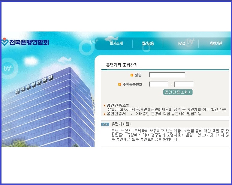 잠자고 있는 돈을 조회할 수 있게끔 전국은행연합회가 '휴면계좌 통합조회 시스템(www.sleepmoney.or.kr) '을 마련했다.