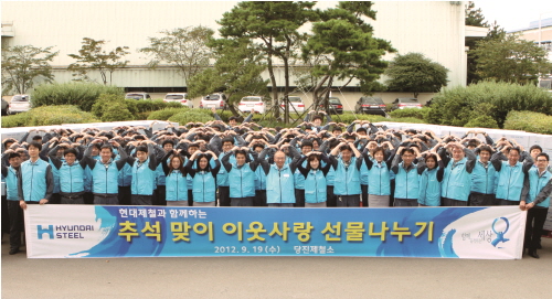 현대제철은 지난 18일에서 20일까지 3일간 저소득층 1천500세대에 차례상 준비에 필요한 식재료 및 밑반찬을 담은 선물세트를 전달하는 ‘추석 이웃사랑 선물나눔 행사’를 진행했다.