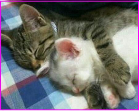 공개된 고양이 백허그 사진 속에는 고양이 두 마리가 자는 모습이 담겨 있다.