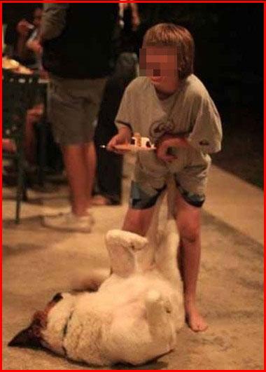 공개된 게시물에서 덩치가 큰 개는 뒷다리를 이용해 어린이를 발로 차고 있다.