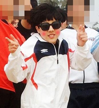 특히 키가 큰 친구들 사이에서 펄쩍 뛰어오른 모습과 트레이닝복 의상이 눈길을 끈다.