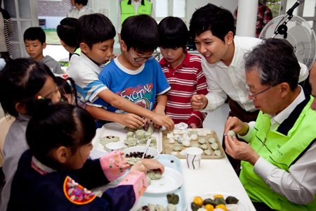 윤용로 외환은행나눔재단 이사장 겸 외환은행장은 25일 오후 영업부 직원들과 함께 남산에 소재한 무의탁 영·유아, 아동, 청소년 보호시설인 사회복지법인 남산원을 방문해 원생들의 추석 빔(의류) 구입 및 학자금 지원을 위한 성금을 전달하고 원생들을 격려한 후 함께 송편을 빗는 시간을 가졌다.