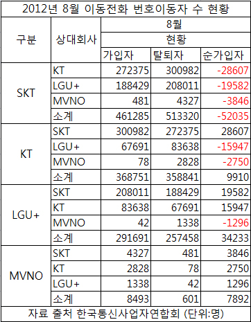 SKT는 모든 통신사에게 가입자를 빼앗기며 순가입자 5만2천35명을 잃었다.