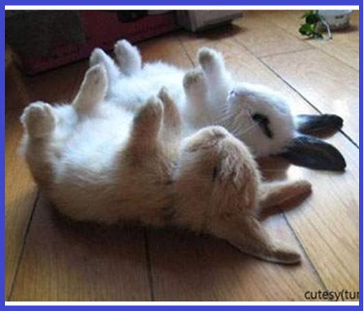 공개된 사진에는 토끼 두 마리가 마치 건전지가 다 된 것처럼 꼼짝않고 누워있다.
