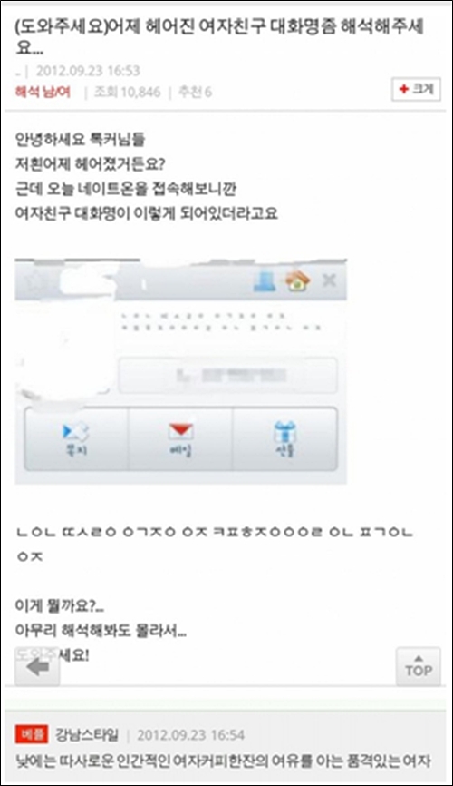 최근 각종 온라인 게시판에 ‘여자친구 대화명 해석’이라는 제목과 함께 여자친구와 이별을 맞은 한 남성이 올린 글이 떠돌아다녔다.