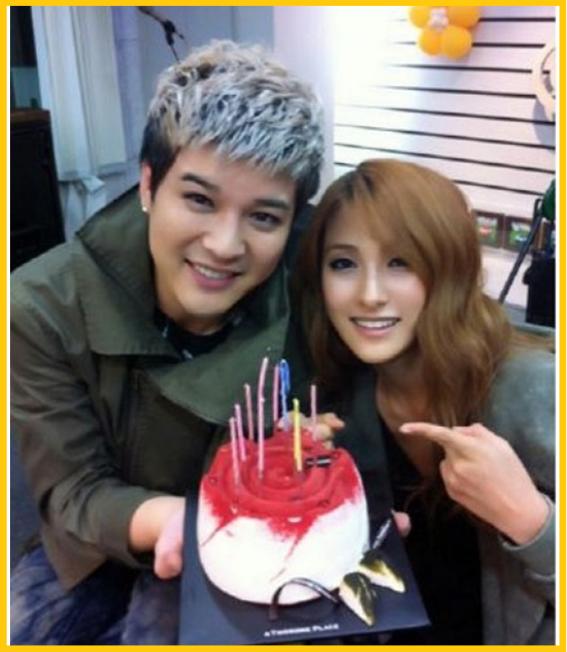 사진에는 신동이 규리와 함게 케이크 앞에서 다정하게 사진을 찍고 있다.