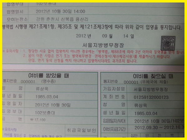 ('류상욱 입대' 입영통지서 사진 - 류상욱 트위터)