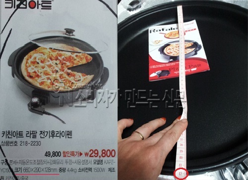 며칠 후 배송된 후라이팬의 크기는 카탈로그에 기재된 것과는 딴 판이었다. 지름이 고작 40cm 밖에 되지 않았던 것.