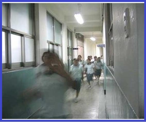 사진에는 점심시간 복도에서 달려가는 학생들의 모습이 담겨있다.