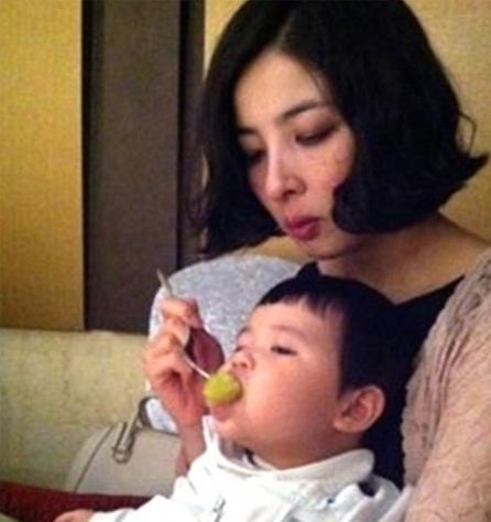 공개된 사진 속 김강우의 미모아내는 아들을 안은 채 과일을 먹여주고 있다.