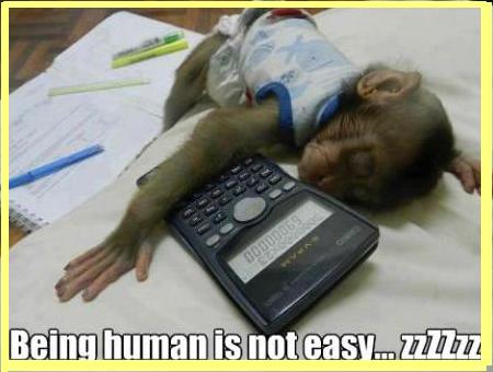 새끼 침팬지 주변에는 열심히 적은 흔적이 담긴 노트와 펜들, 계산기가 놓여 있어 '선행학습의 최후'로 웃음을 자아낸다.