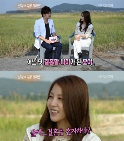 29일 방송된 KBS 2TV ‘연예가중계’에 출연한 보아는 자동차 광고를 찍던 중 결혼 계획에 대해 언급했다.