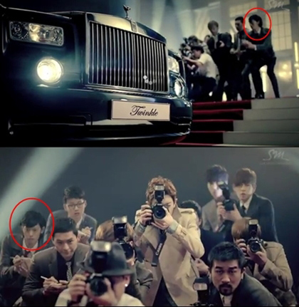 공개된 사진은 태티서의 ‘트윙클’ 뮤직비디오를 캡처한 것으로, 정준영은 태티서를 취재하는 기자들 중 한명으로 등장했다. 특히 짧은 등장임에도 불구하고 작은 얼굴과 뚜렷한 이목구비 가 일품이라는 평이다.