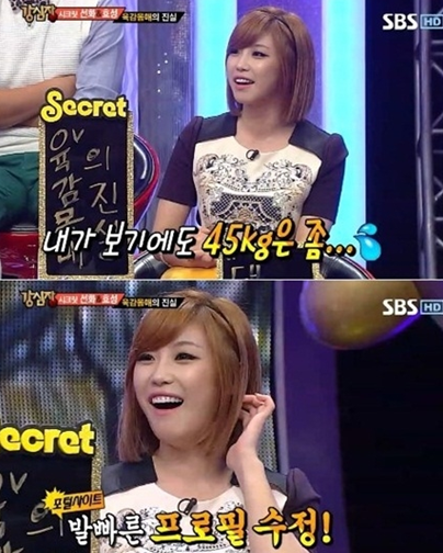 여성 아이돌그룹 '시크릿' 멤버 전효성은 지난 2일 방송된 SBS '강심장'에서 "컴백하기 전 3kg을 감량해 현재 47kg이다"고 말했다