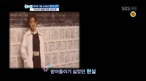 김수영은 "학교에 준비물을 가져가야 하는데 집에 돈이 없고 그러다보니 선생님에게도 꿀밤을 맞았다"며 "주눅이 들어 왕따도 당했다. 초등학교 5학년때 자살까지 생각했었다"고 말했다.