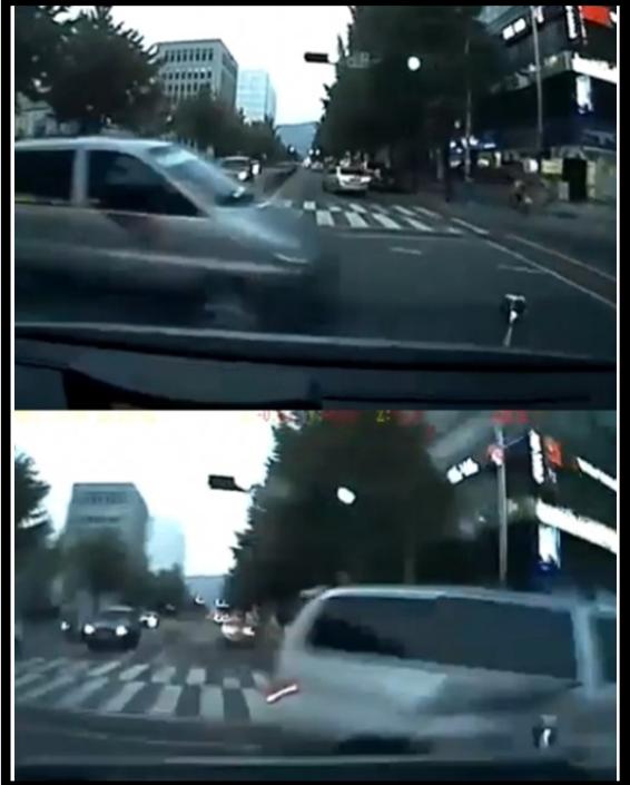 이 영상에는 한 승합차가 신호를 무시하고 달려오다 블랙박스 영상 차량과 부딪히자 승합차가 날아가는 충격적인 모습이 담겨있다.