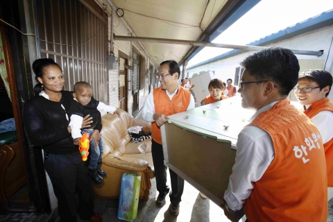 한화손해보험은 이날 경기도 동두천에 위치한 동두천가정개발센터를 방문해 저소득 난민아동 가정에 대한 환경개선활동과 함께 다문화 아동을 대상으로 자전거 등 필요물품을 기증했다.