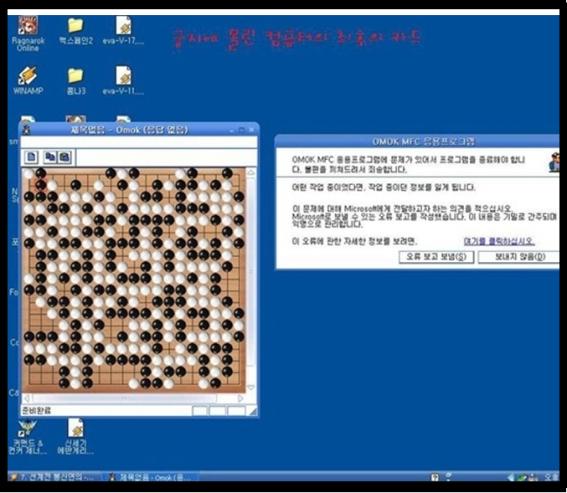 내용은 컴퓨터와 바둑을 하다가 컴퓨터가 상황이 불리해지자 오류창이 뜨며 강제로 게임을 종료시킨다는 내용이다.