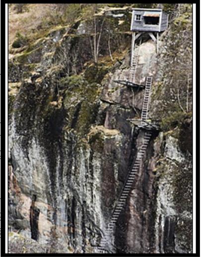 이 집에서 나가려면 절벽 아래까지 긴 사다리를 이용해 내려가야한다.