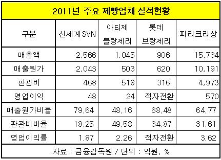 아티제블랑제리(2.26%)와 파리크라상(3.62%)은 신세계svn 보다는 높았지만 지난 2010년 기준 국내 제조업 평균 영업이익률 11.3%나 전체 산업 평균 영업이익률 8.3%에 크게 못 미쳤다.