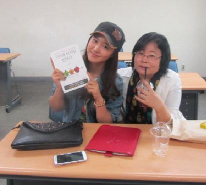 공개된 사진 속 유리는 '프리랜서처럼 일하라'의 저자 이은미 작가과 나란히 앉아 해맑은 표정으로 포즈를 취하고 있다.