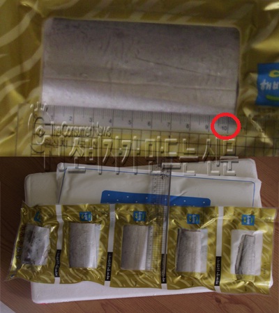 ▲ 광고사진(위)과 실제 19cm정도인 굴비(아래)