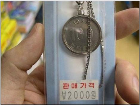 공개된 ‘20배 남는 장사’ 게시물은 100원짜리 동전을 이용해 만든 목걸이가 담겨있다. 100원을 사용해 만든 목걸이지만 판매가격은 2천원이라 ‘20배 남는 장사’란 말이 붙여진 것으로 보인다.