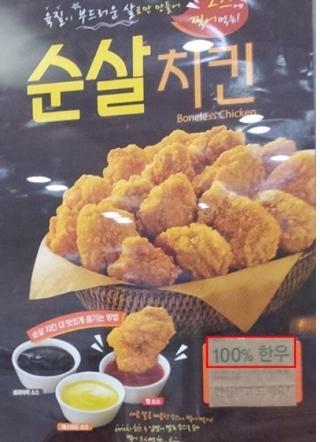 순살치킨의 비밀 사진에는 한 치킨집의 전단지가 나와 있는데, 치킨집에서 홍보하는 순살치킨이란 글 밑에 ‘100% 한우’라고 덧붙여놔 이를 본 네티즌들에게 큰 웃음을 주고 있다.
