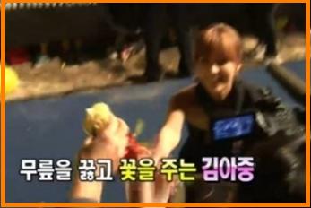 이날 행사에 참석한 김아중은 블루카펫을 걷던 중 연예가중계 리포터 김태진을 발견하고 환하게 웃으며 무릎을 꿇은 채 자신이 들고 있던 장미꽃을 줬다.