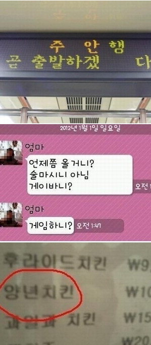 또 한 치킨집 메뉴판에는 '양년치킨' 이라는 기상천외한 메뉴가 쓰여 있어 보는 이들을 폭소케 했다.
