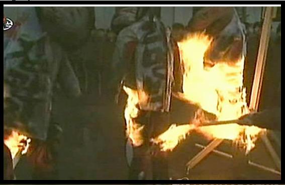 또 시민들이 나무 몽둥이와 각목으로 대학생들을 폭행해 얼굴이 피범벅이 된 모습과 함께 누군가가 불을 붙여 이들을 산 채로 처형하는 처참한 장면이 담겨있다. (사진-연합뉴스(해당기사내용과 관련없음)