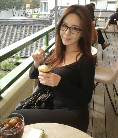 몸에 붙는 블랙셔츠와 팬츠를 매치한 강예빈은 뿔테안경을 쓰고 있어 지적으로 보인다.
