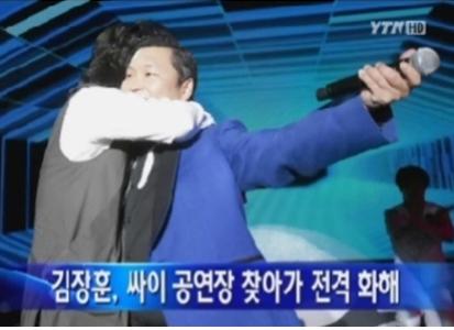 10일 서울 한 호텔에서 열린 자동차 기업 행사 공연 중이던 싸이에게 김장훈이 찾아왔다.