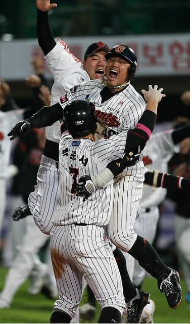 12일 프로야구 준플레이오프 4차전 롯데 : 부산 경기에서 롯데 자이언츠가 두산 베어스를 4대 3으로 역전하며 플레이오프에 진출했다.