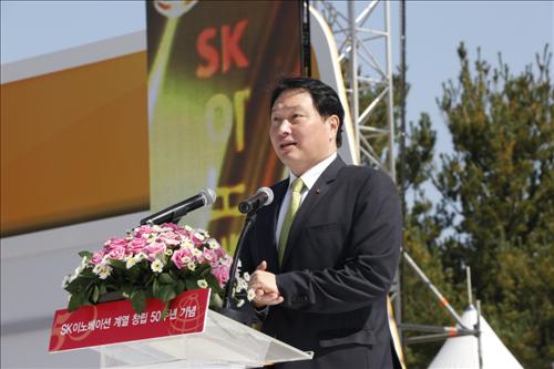 최태원 회장은 지난 12일 대전 글로벌테크놀로지에서 열린 창립기념식에서 "50년전 울산의 작은 어촌에서 시작해 매출 80조 규모에 이르기까지 기적적인 성장을 이룬 노고에 감사한다"면서 "2020년 매출 290조원, 영업이익 14조원이라는 비전도 충분히 이뤄낼 수 있을 것"이라고 말했다.