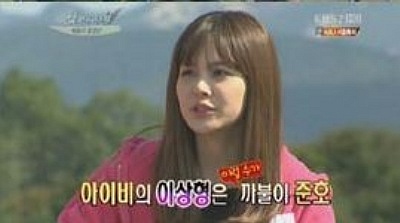 이에 아이비는 "김준호 같은 유머러스한 남자를 좋아한다"고 답했다. 또한 주상욱 스타일은 어떠냐'라는 질문에 아이비는 "외모적인 이상형은 주상욱이다. 하지만 안선영 언니 때문에 무섭다"고 답해 웃음을 자아냈다.