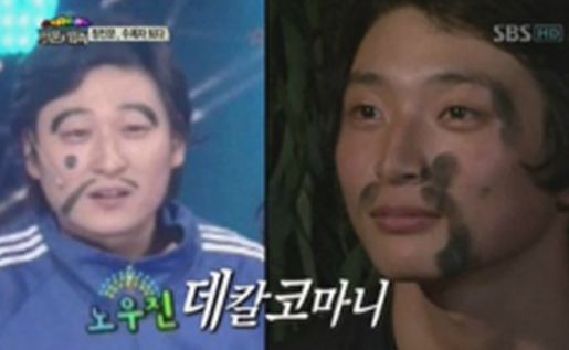2AM 멤버 정진운이 김병만의 수제자 노우진의 데칼코마니로 변신해 화제다.