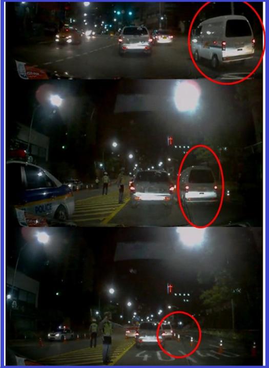 공개된 영상에는 음주 단속 중 다마스 한 대가 음주 측정 중인 차량 옆으로 들어왔다가 이내 출발한다.