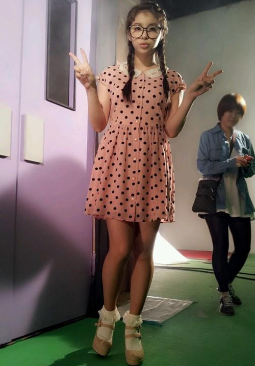 흔녀 변신 사진에서 에일리는 양 갈래로 딴 헤어스타일에 복고패션을 하고 있다.