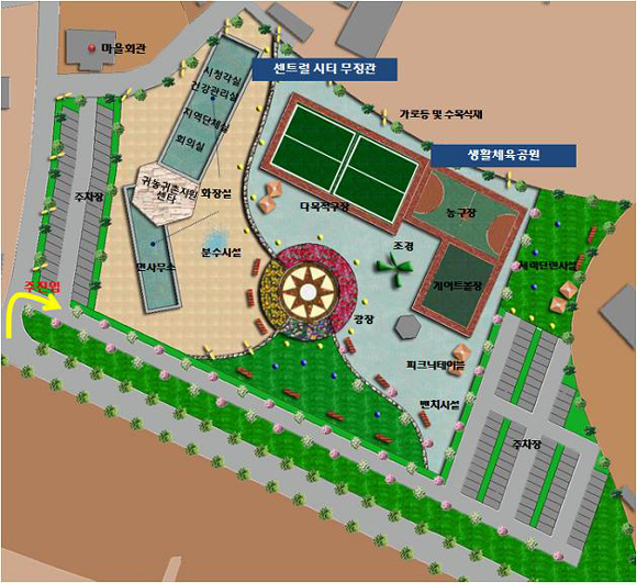 또한 소방도로 개설을 비롯해 피크닉테이블 등 편의시설과 게이트볼장, 농구장, 다목적 구장, 체력단련시설, 지압산책로 등을 갖춘 생활체육공원도 조성할 계획이다.